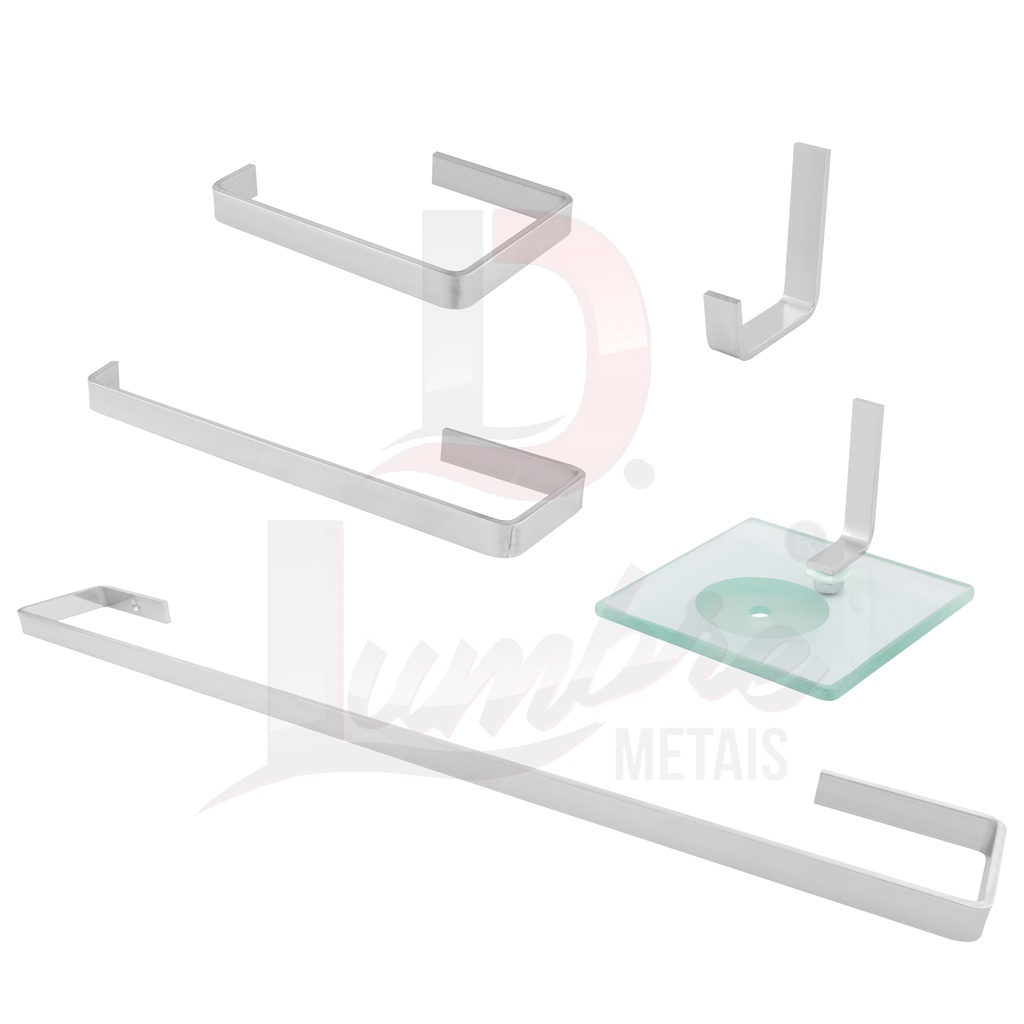 Kit Acessórios Para Banheiro 5 Peças Inox e alumínio Quadrado COd 03