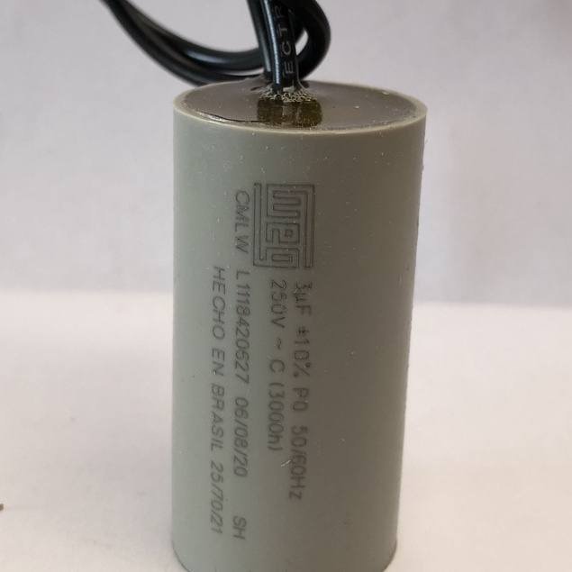 Capacitor polipropileno p/ ventilador MK305 3uf x 250vac 25/70/21 com 2 fios Mondial, mallory e outros