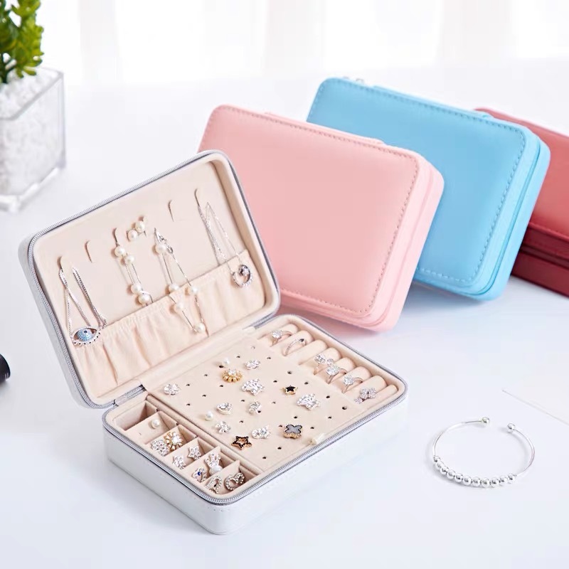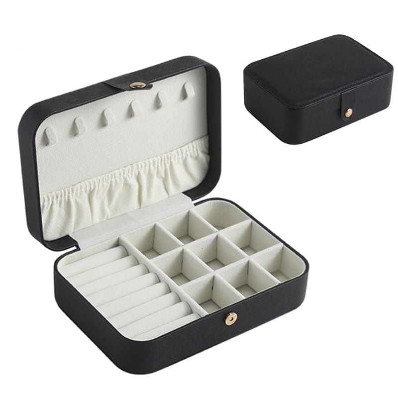 Porta Jóias Multi-Função Portátil De Couro Organizador De Duplo Compartimentos Jóias Bijuterias