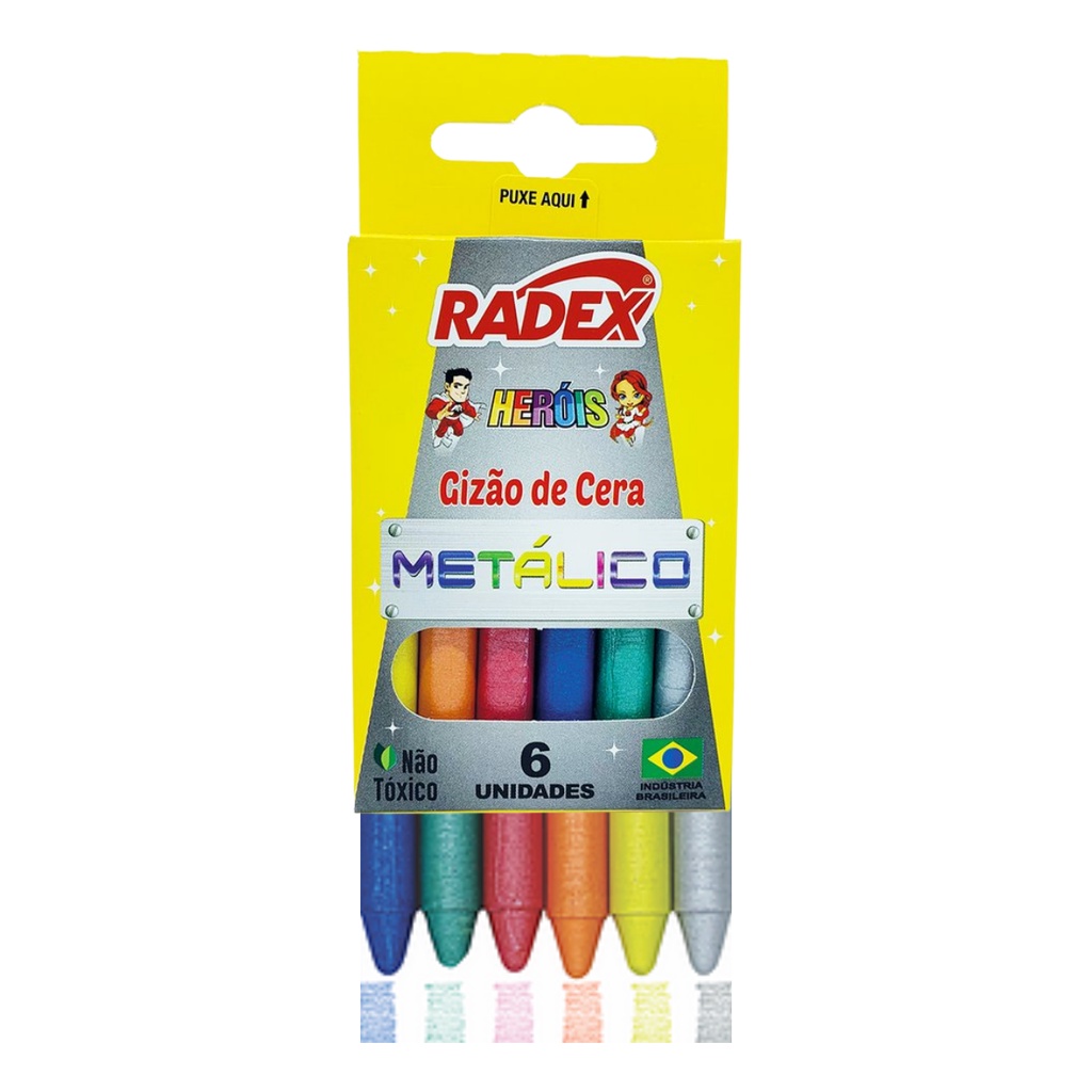 Giz de Cera Fino 6 Cores Metálico Radex Heróis