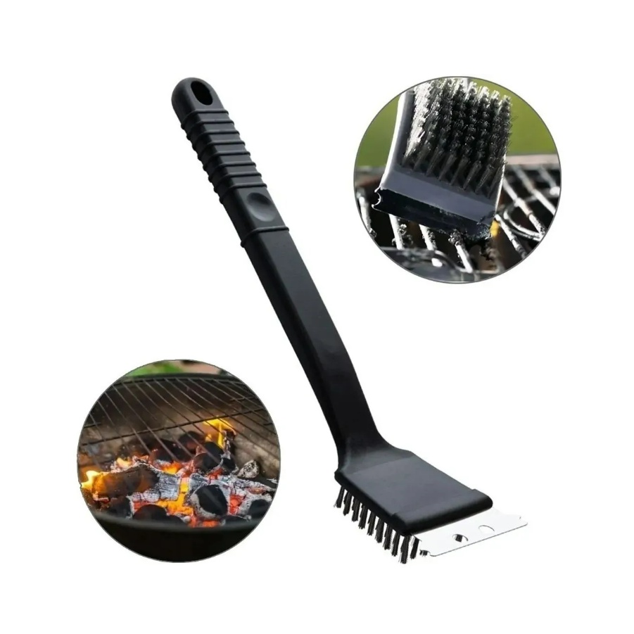 Escova Limpa Grelha Churrasqueira De Aço Espátula Cerdas Grande