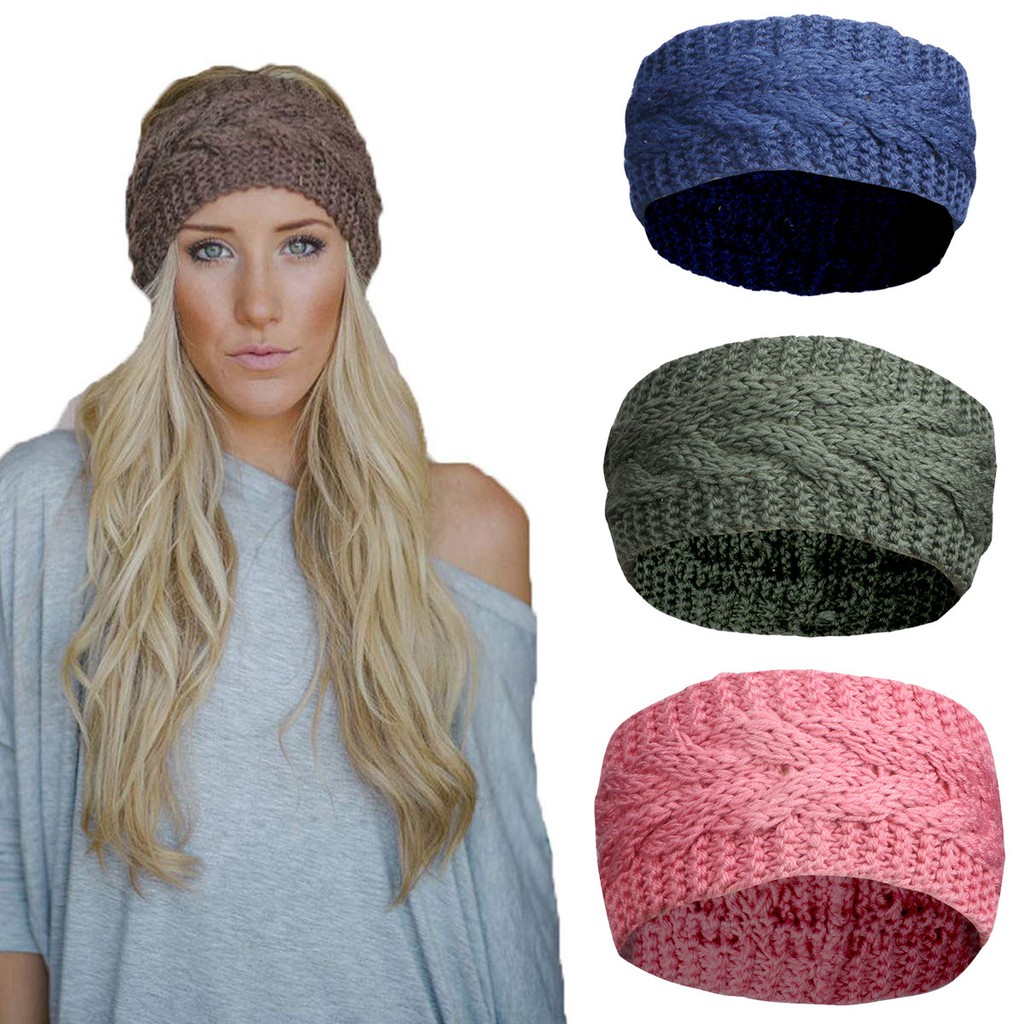 Nova Cor Sólida Malha De Lã Oco Top Chapéu Headband Faixa De Cabelo Para Manter Aquecido No Outono E Inverno Europa E América Handmade Faixa De Cabelo Headgear Mulheres