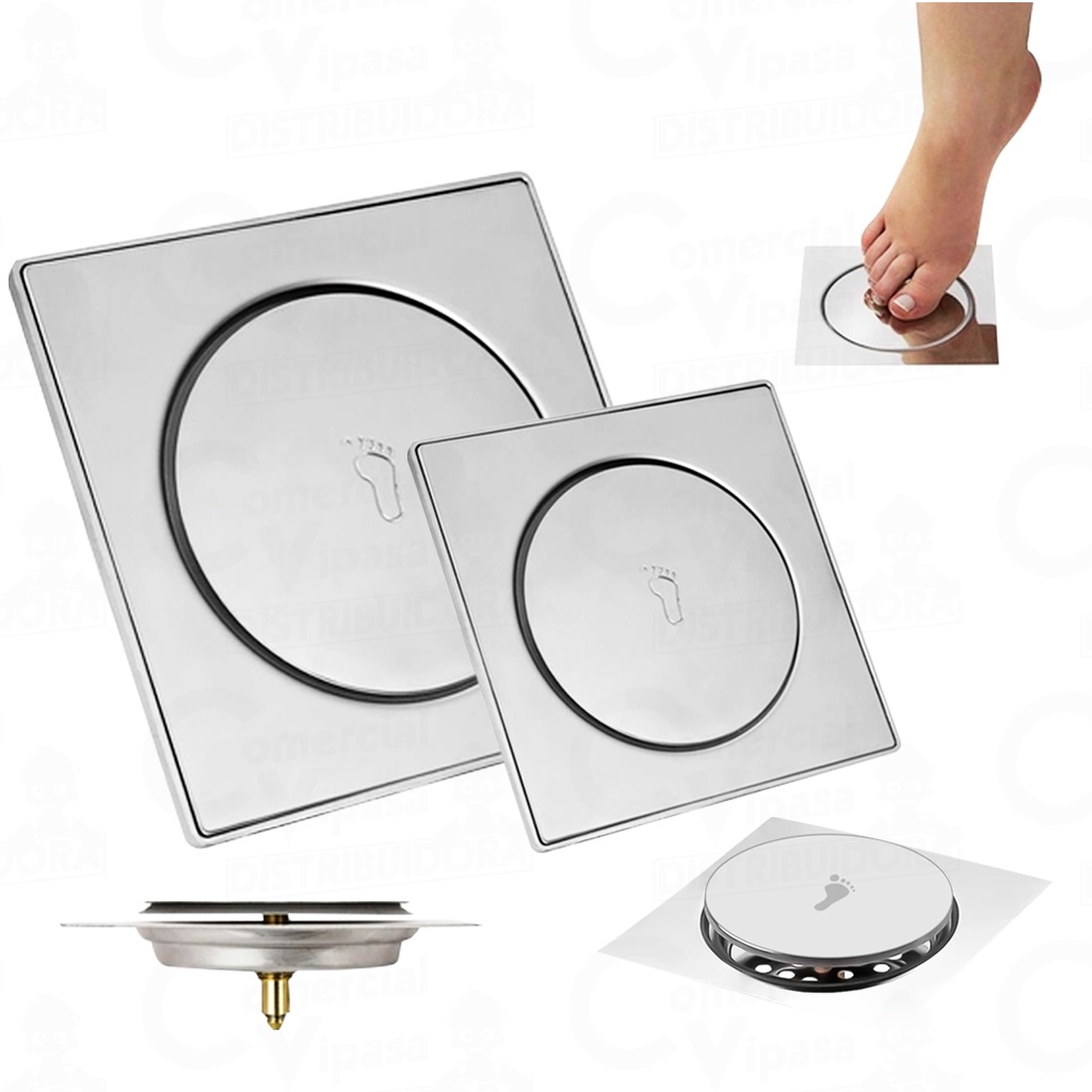 Ralo Click Inteligente 10x10 Cm -15x15 Cm Quadrado Inox Cromado Banheiro Veda Cheiro