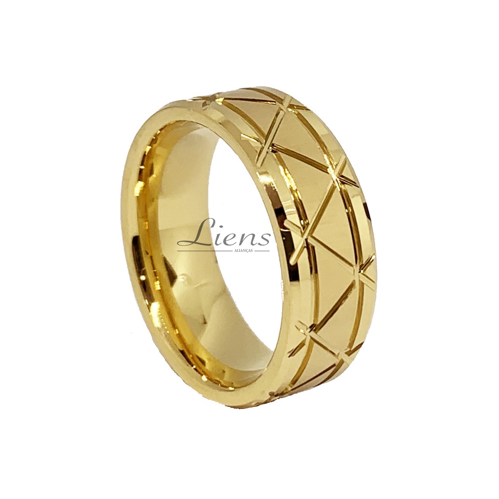 Aliança Avulsa De Tungstênio Banhada A Ouro 18k Modelo Luxo Casamento
