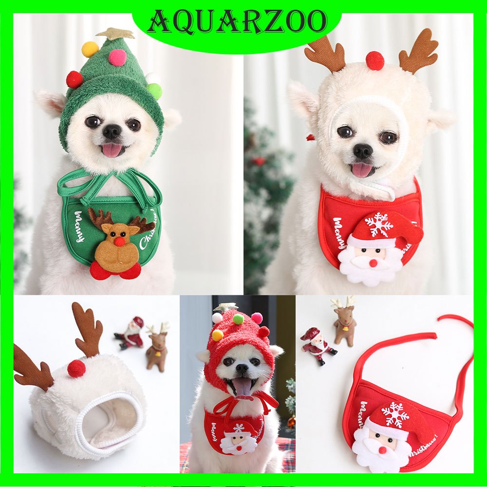 AQUARZOO Conjunto De Lenço De Natal Para Animais De Estimação , Babete Ajustável Papai Noel , Chapéu Elk Plush E Coleira
