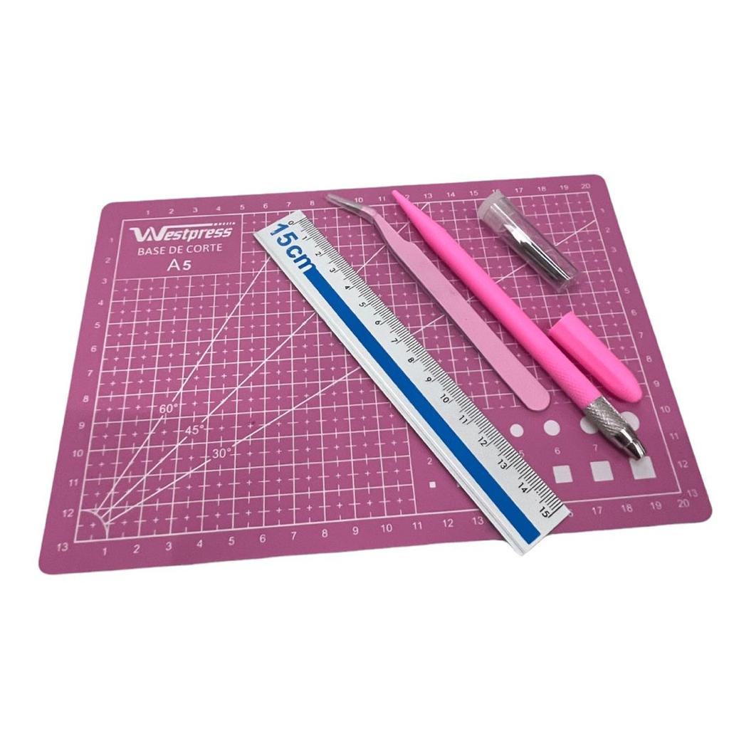 Kit Base de Corte 22x15 A5 com Régua Estilete de Precisão e Pinça - Westpress