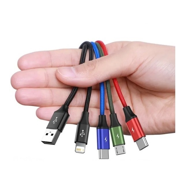 Cabo 4 Em 1 Baseus Com 2 Tipo C + 1 Ip + 1 Microusb 120cm