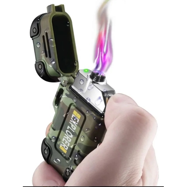 Isqueiro elétrico a prova d'água USB plasma recarregável explorador anti vento 2 arcos super resistente