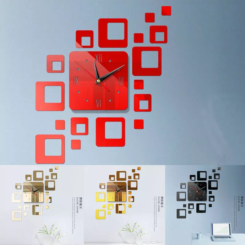 Estilo Moderno DIY Large Autocolantes De Relógio De Parede/Relógios De Quarto Quadrados De Quartzo Removíveis Espelho Acrílico Decoração