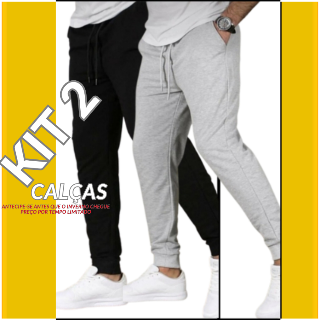 kit 2 calça de moletom masculina jogger academia e caminhada muito confortável