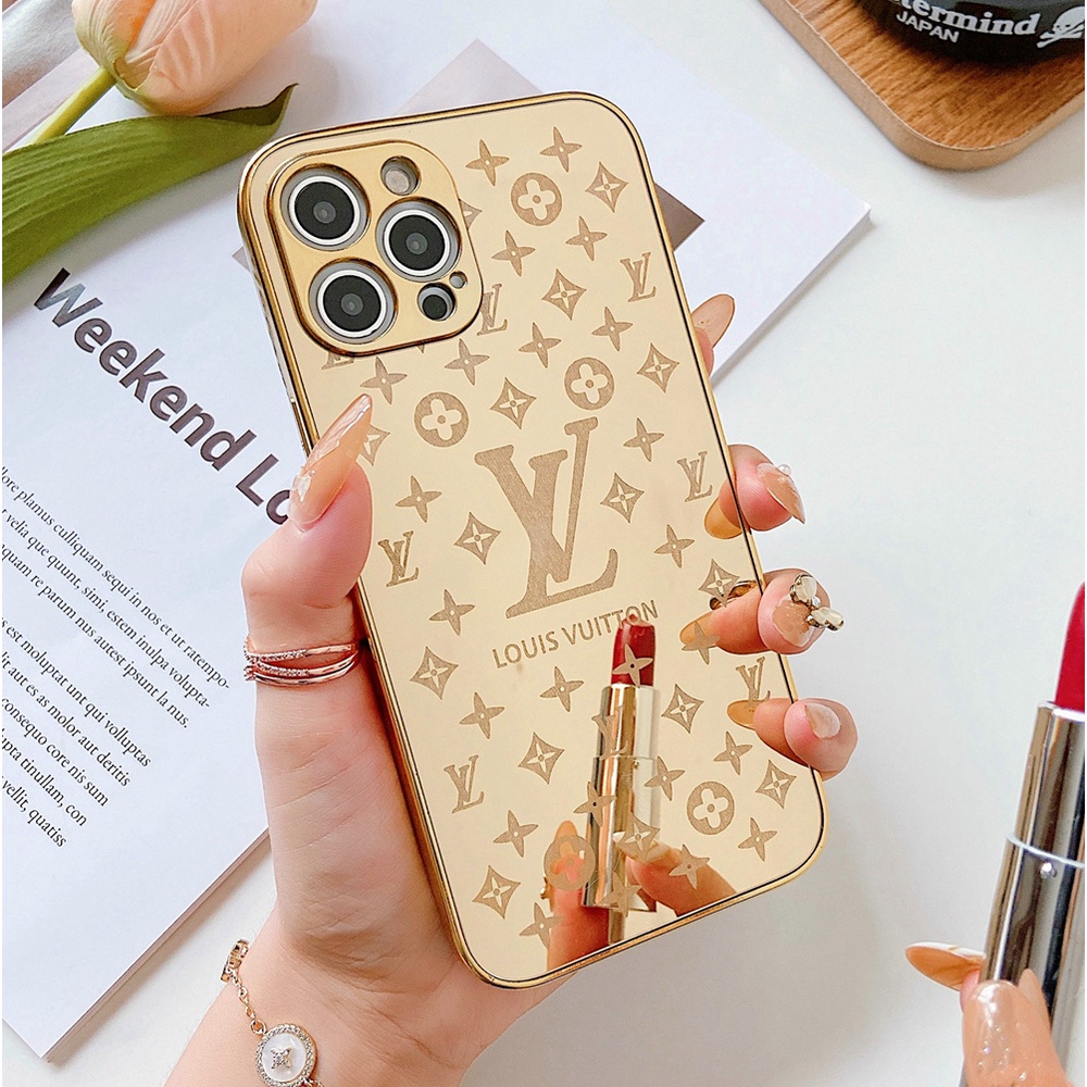 Capa De iPhone Com Efeito Espelho Dourado 24K Eletroplatado Em Acrílico Anti-Impacto Para 14 Pro Max 14 Plus 13 12 11 Xs XR