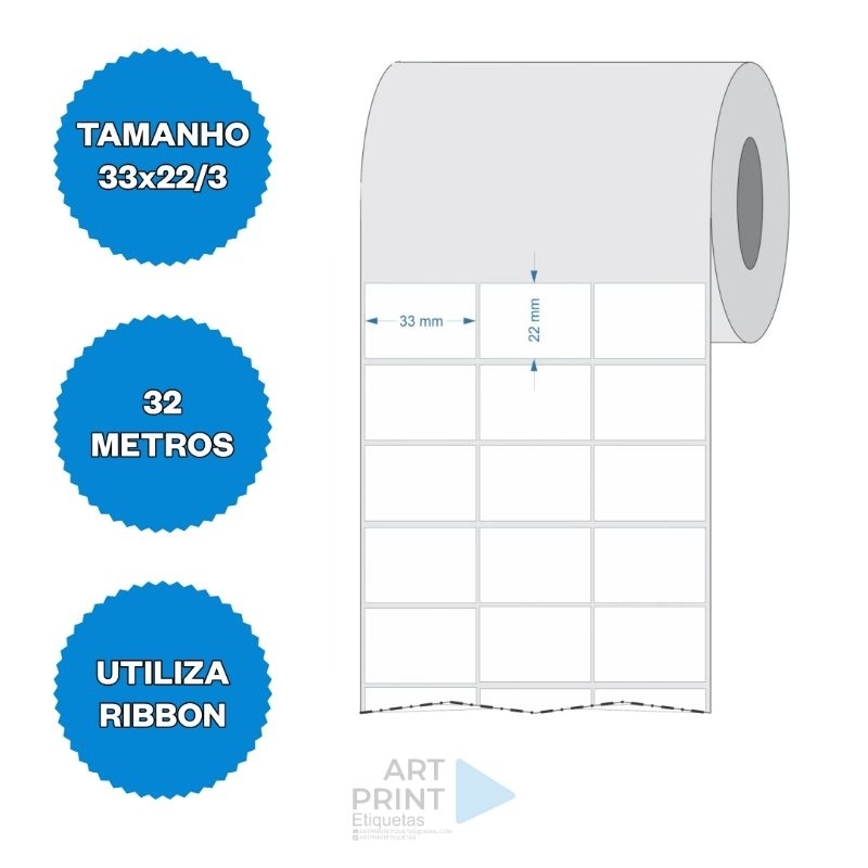 Etiqueta 33x22 3 Colunas Papel Couchê.