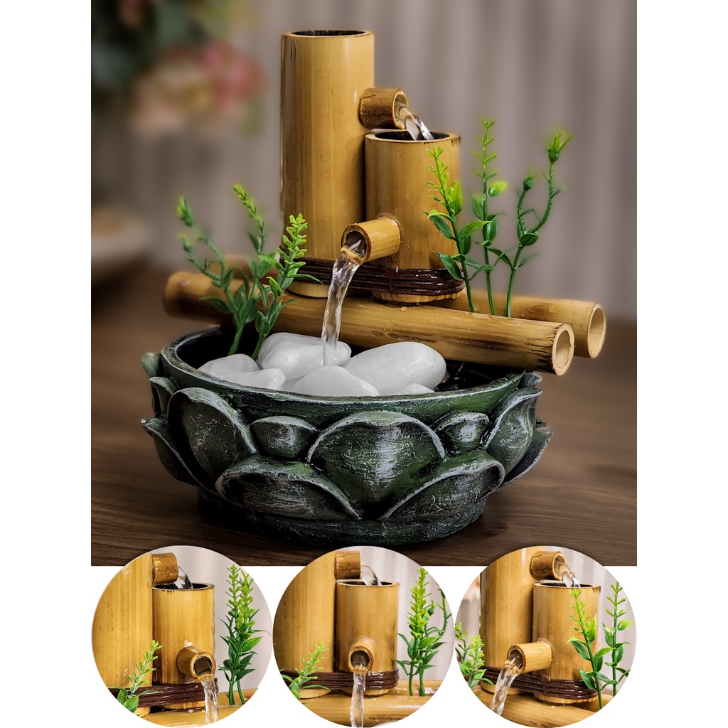 Fonte De Agua Cascata 2 quedas Bambu Flor Lotus Decoracao