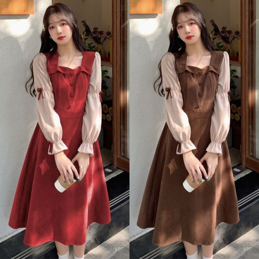 Vestido Feminino De Manga Longa Presidente De Nomeação De Pescoço Quadrado Francês De Veludo