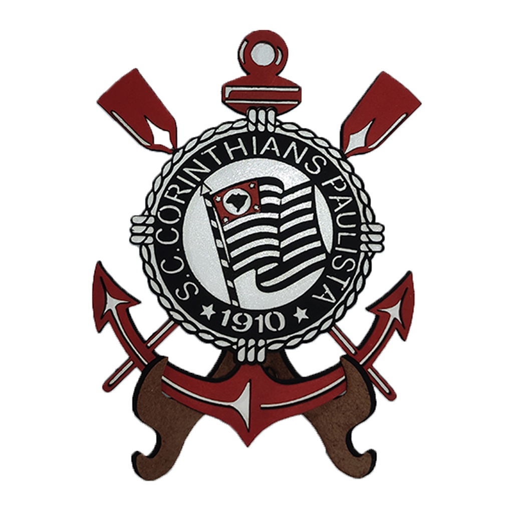 Escudo Corinthians em MDF Alto Relevo Decoração em Miniatura Brasil Futebol