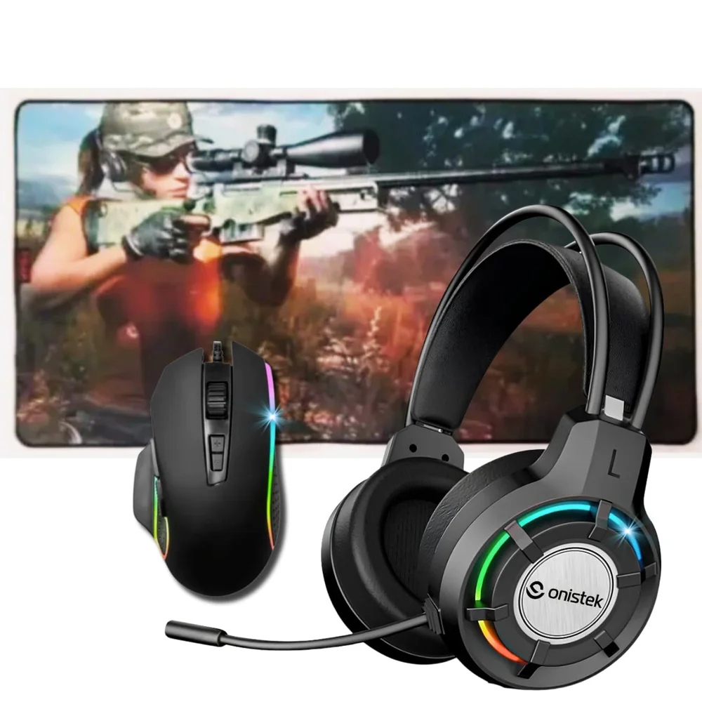 Kit Mouse Fone Headset Gamer LED RGB Over-Ear Pc USB P2 Computador Note