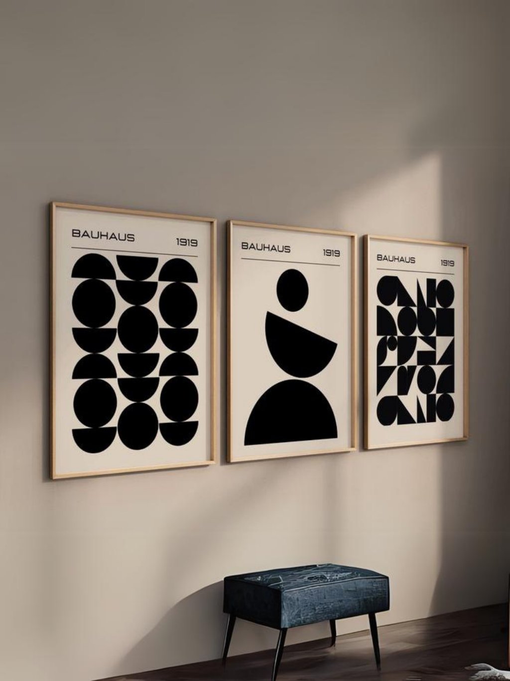 Kit 3 Quadros Decorativos Bauhaus Preto e Branco Minimalista No2