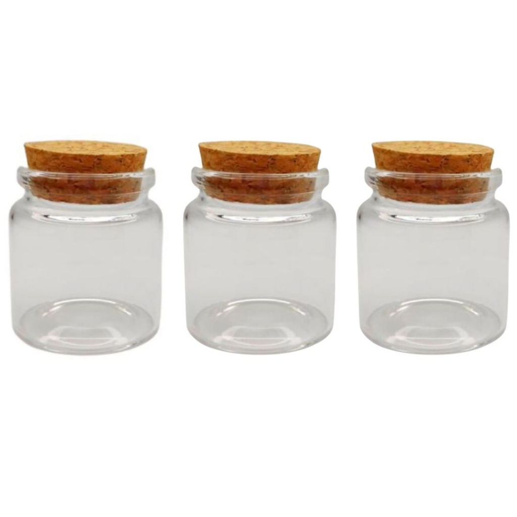 Kit Com 3 Potes Vidro Redondo Com Tampa Rolha 20mL