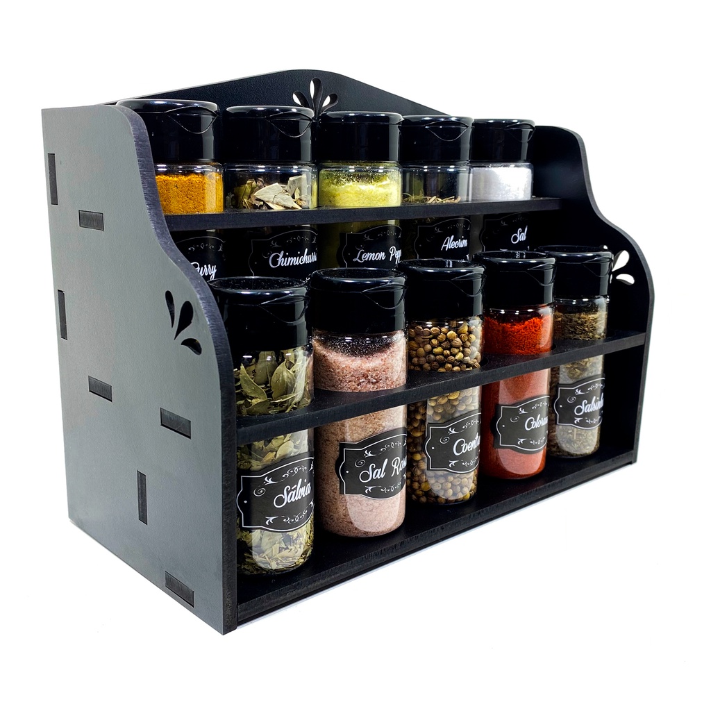 Porta temperos mesa ou parede kit suporte condimentos com potes + ETIQUETAS