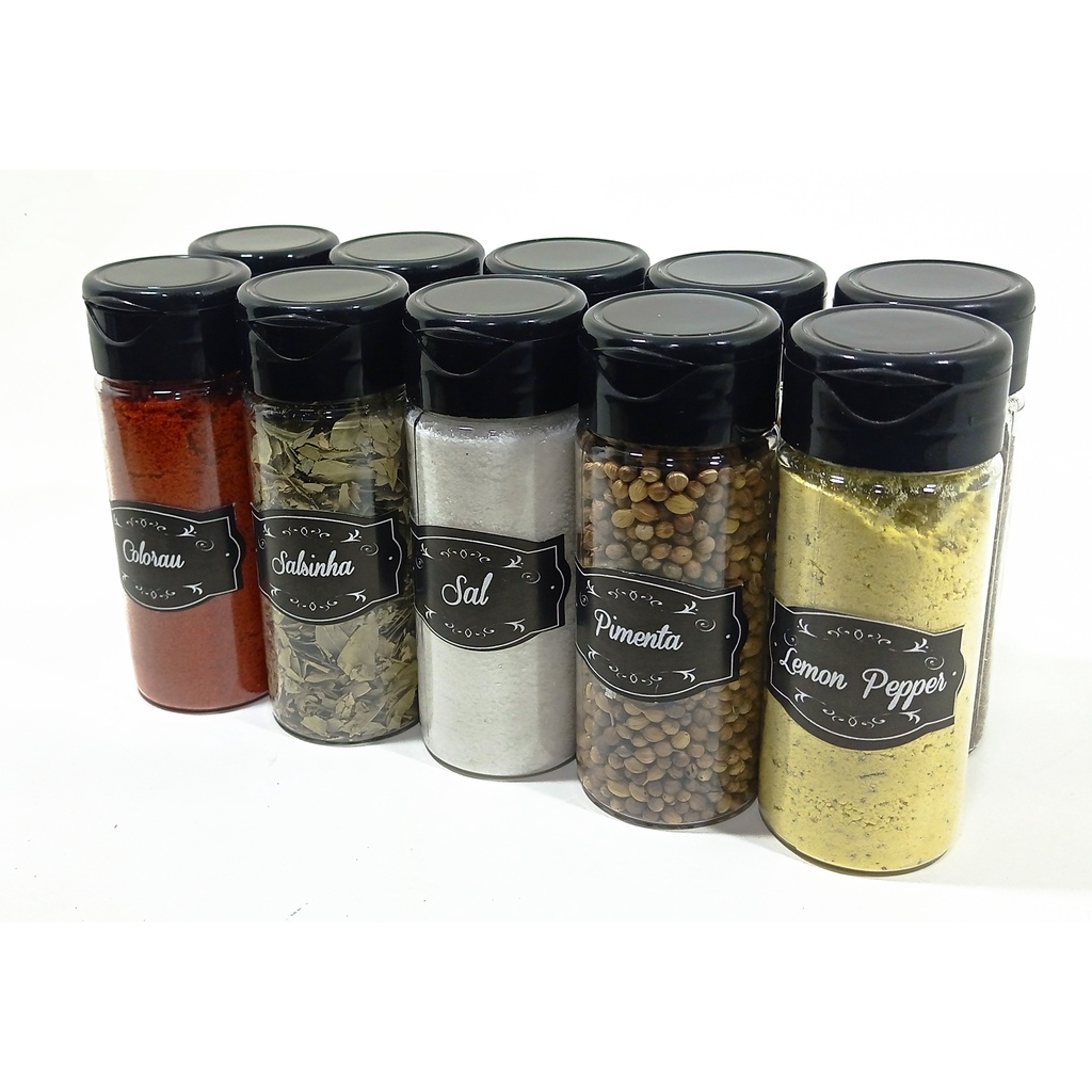 Porta temperos organizador kit 10 potes condimentos + ETIQUETAS
