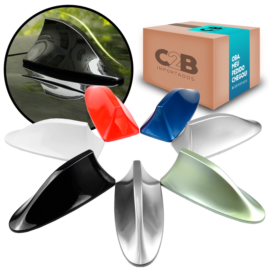 Antena Veículo Automotivo Shark Tipo Barbatana Tubarão Universal Esportiva Funcional Recepção Rádio Sinal AM FM Teto Carro Universal Cores Preto Branco Carbono Style Cinza Prata Vermelho Dourado Azul