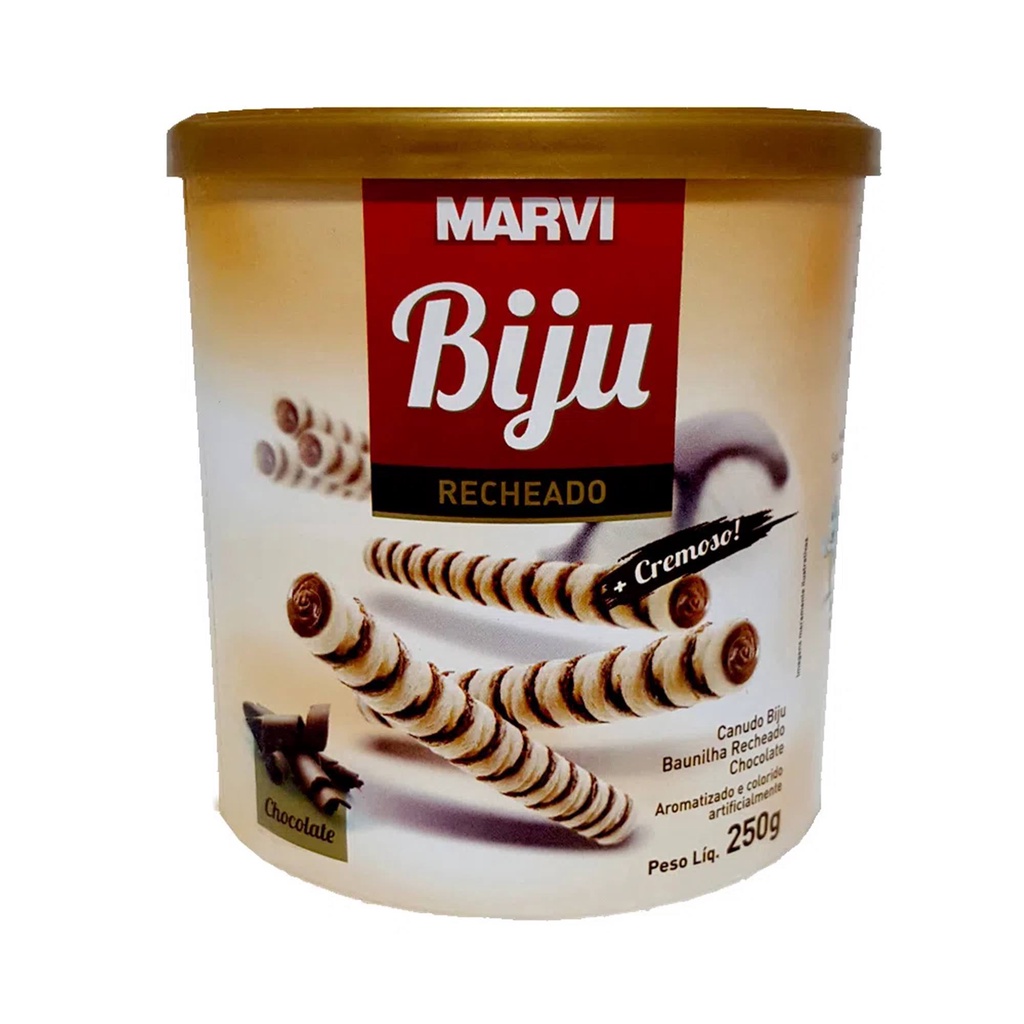 Biscoito Canudo de Baunilha com Chocolate 250g Biju- Marvi