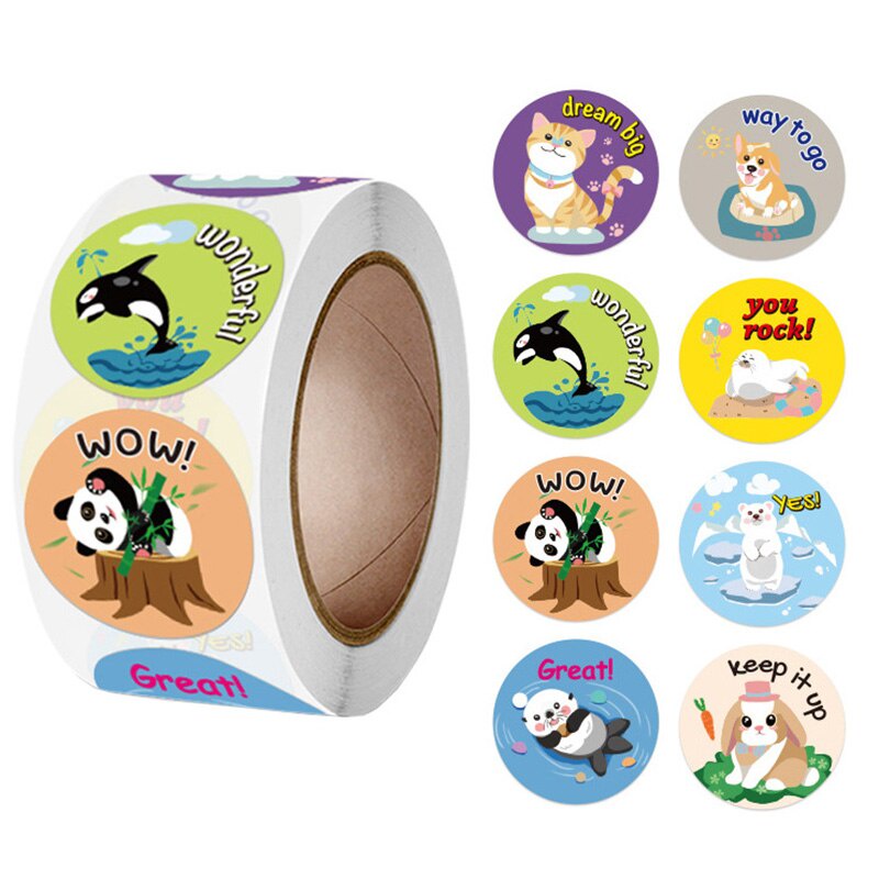 500 Pcs Teachers Reward Motivational Stickers Roll for Kids Stationery Decoration Cute Animals English Cartoon Sticker Labels