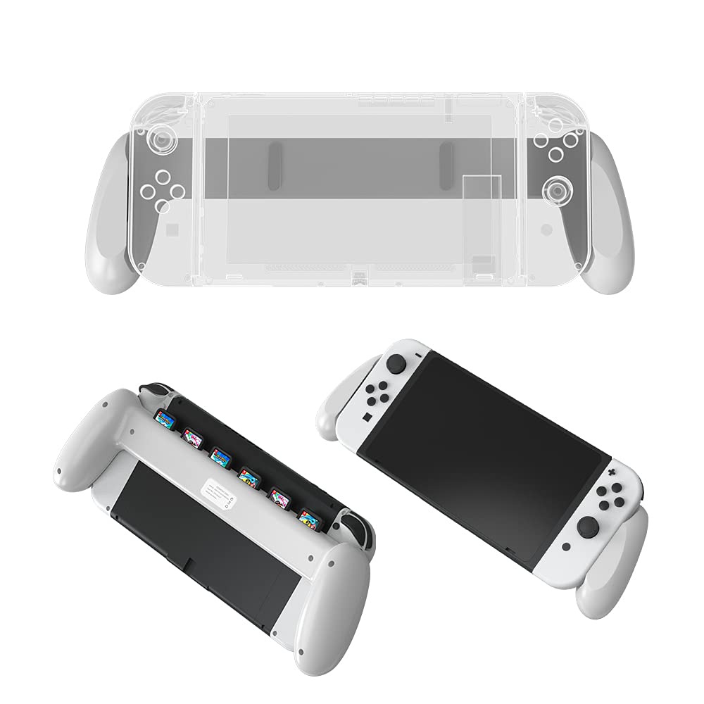 Punho De Mão Para Nintendo Switch OLED Modelo Interruptor Grip Confortável & Ergonômico Com Slot De Armazenamento De Cartão De Jogo-White