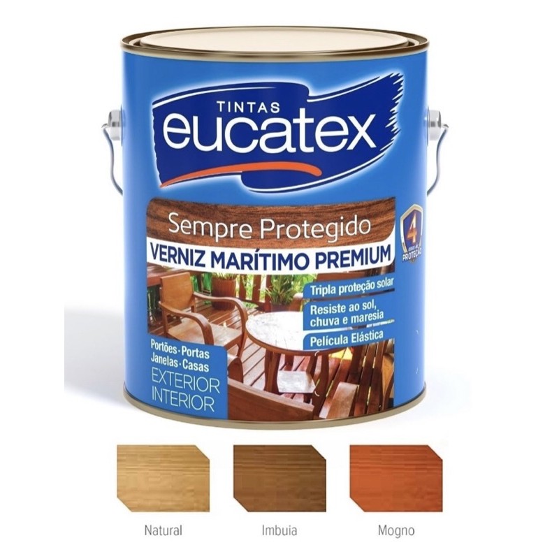 Verniz Marítimo / Mogno / Imbuia - Verniz Copal / Incolor - 900ml Tinta De Verniz para madeira acabamento brilhante Eucatex Premium