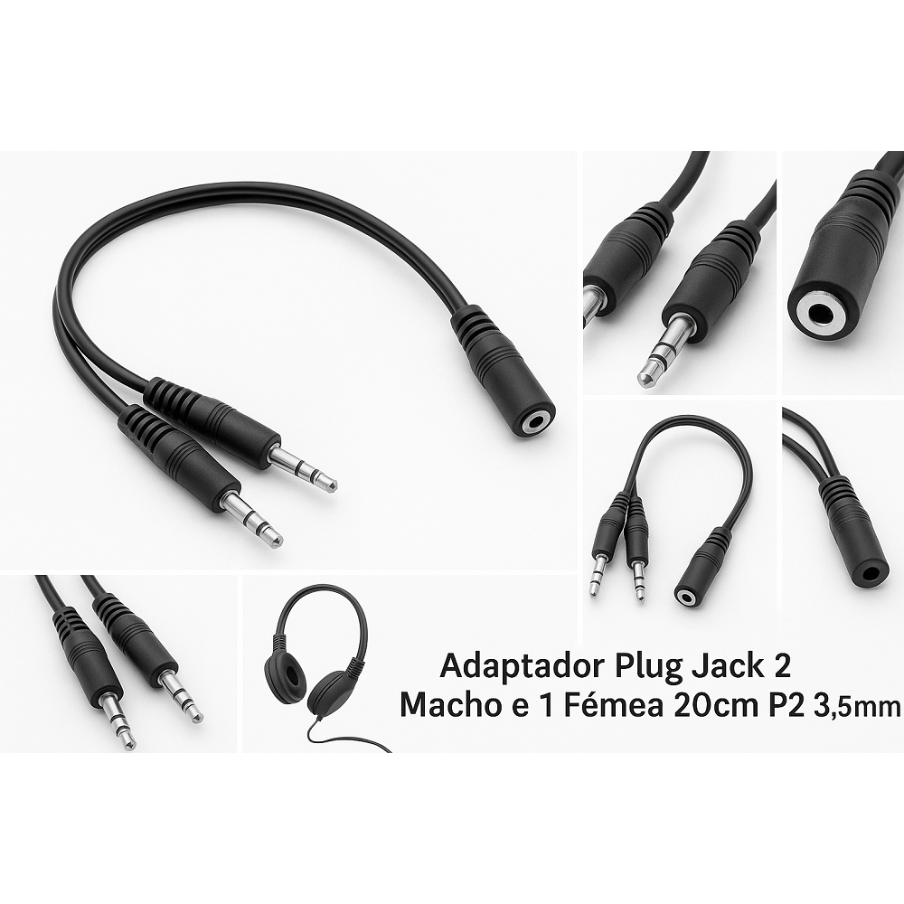 Cabo Duplicador 2 P2 Macho X 1 P2 Fêmea - equipamentos de Audio Adaptador Plug Jack 2 Macho E 1 Fêmea Splitter Headphone