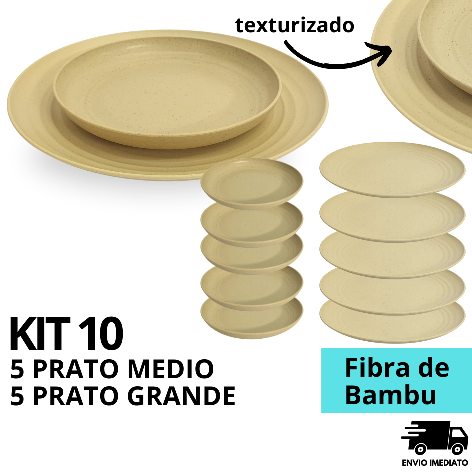 Novo Kit 5 Pratos Grande+ 5 Pratos Medio Fibra de Bambu Resistente Louça para Casa Decoração Cozinha