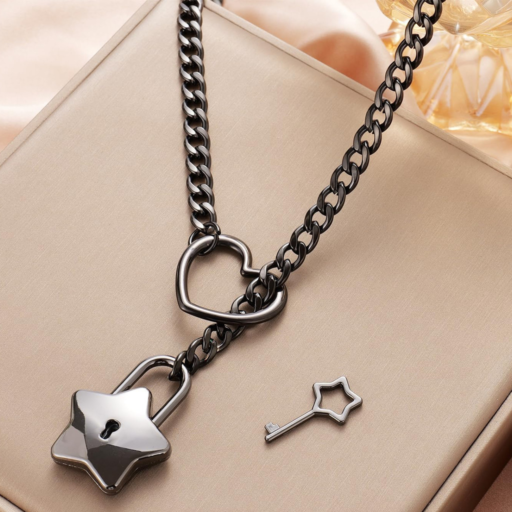 Colar de corrente deslizante feminino, Anel de O em forma de coração, Punk Rock, Colar cubano, Jóias femininas, Colar chave ajustável em forma de Y