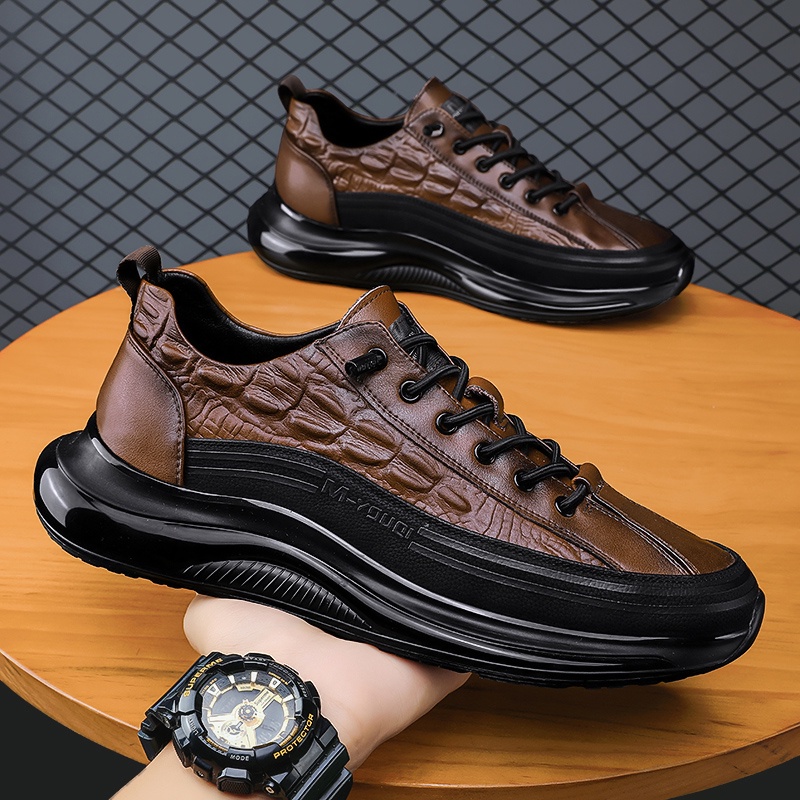 Light 2023 Novo Estilo De Sapatos Masculinos De Borracha Confortável Tênis Elástico Padrão De Crocodilo Casual De Mola Grossa Outono