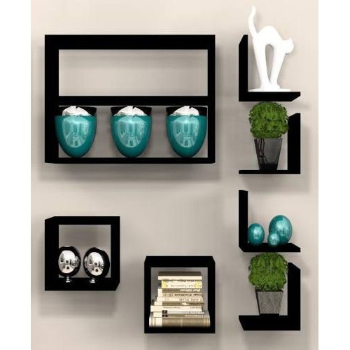 Kit 7 Peças Nichos Cubo L Mdf Preto Livros Quarto Prateleiras
