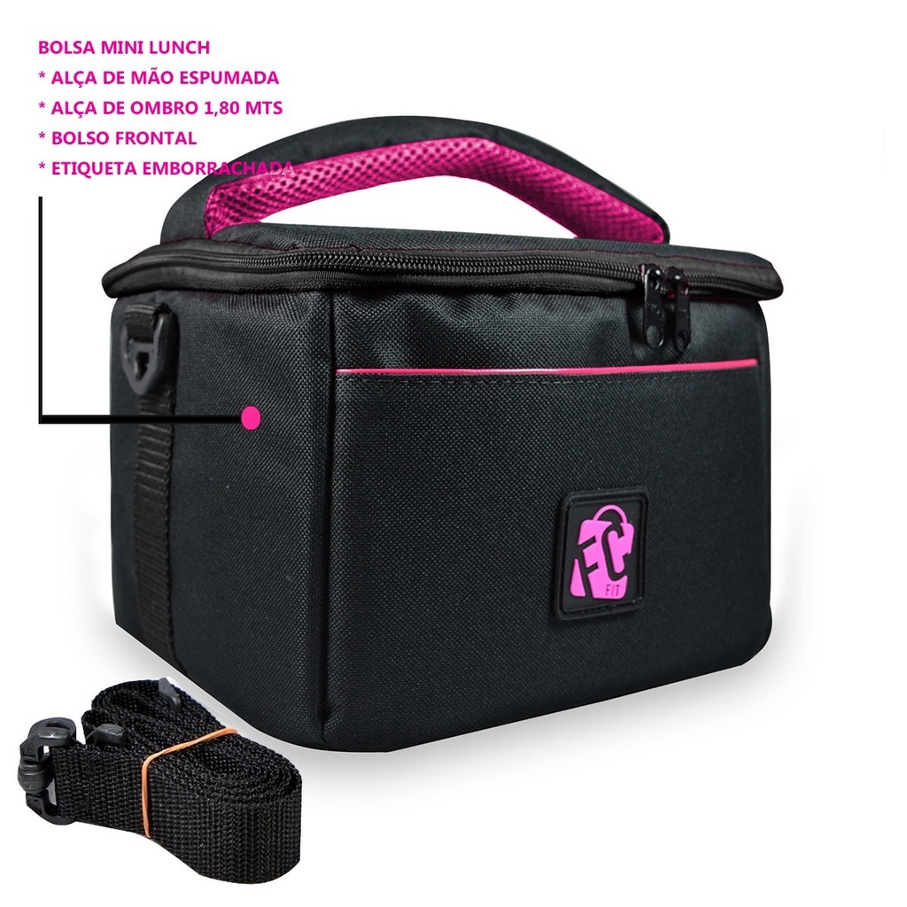 Bolsa Térmica Fitness Lancheira Marmiteira Preta Pink Dieta Termica