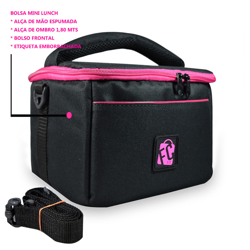 Bolsa Térmica Fitness Impermeável Lancheira Marmiteira Preta Pink Dieta Termica