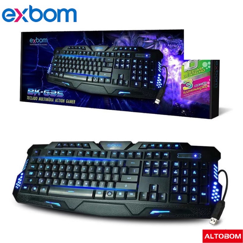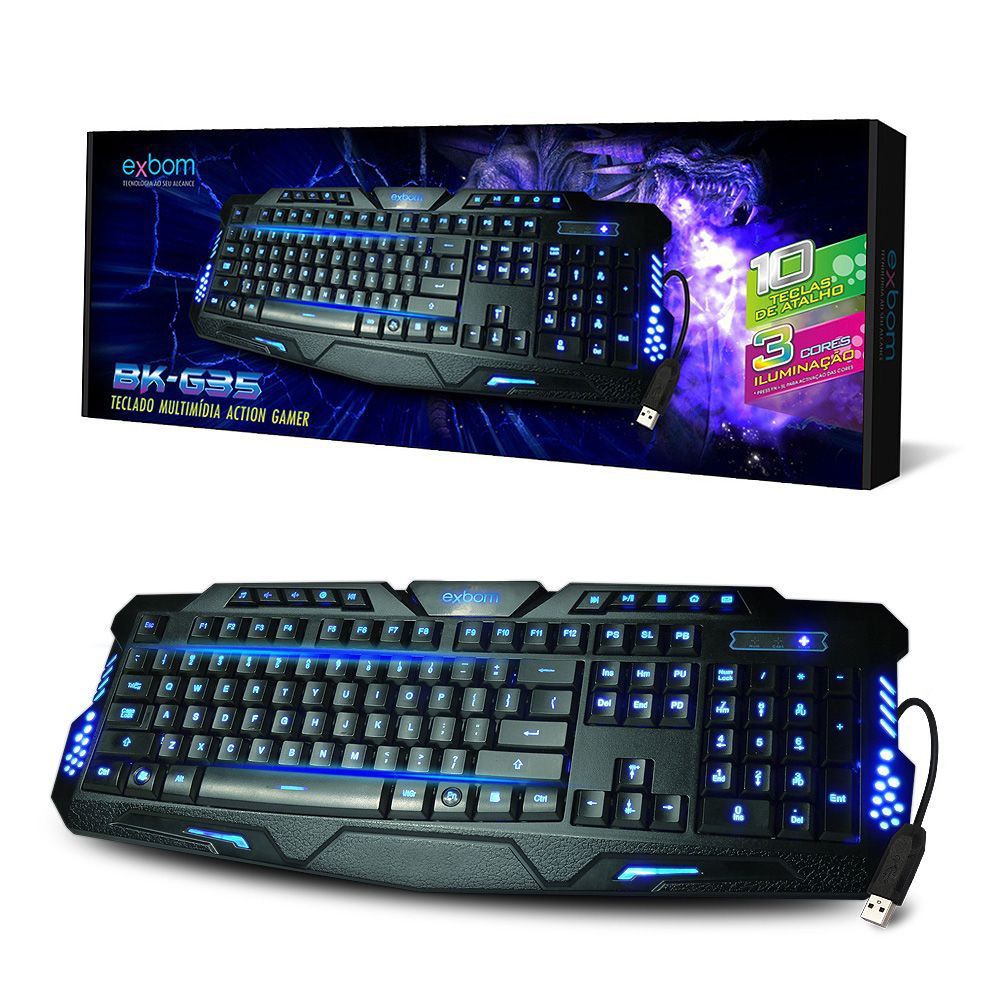 Teclado Gamer com fio BK-G35 USB com tecla de atalho e 3 cores iluminação ABNT - Padrão Brasileiro