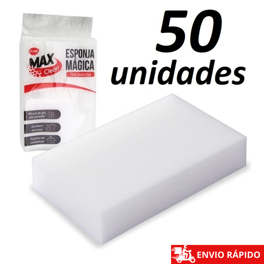 Kit 50 Esponja Mágica Bucha Melamina Tira Mancha Original Desengordura Limpeza Max Clean