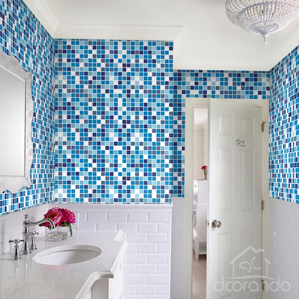 Adesivo Pastilha Lavável Para Banheiro e Cozinha Azul e Branca 3 Metros
