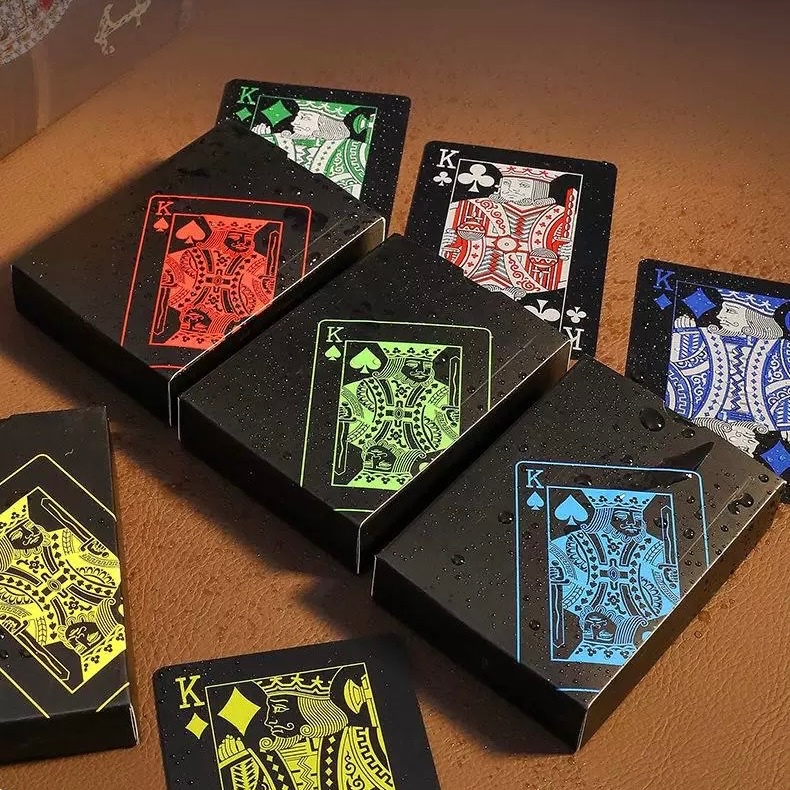 Baralho Preto Plástico Prova D'agua Black Poker Impermeável Dollar Mágica Truco Vermelho Azul 54 Cartas Fosco