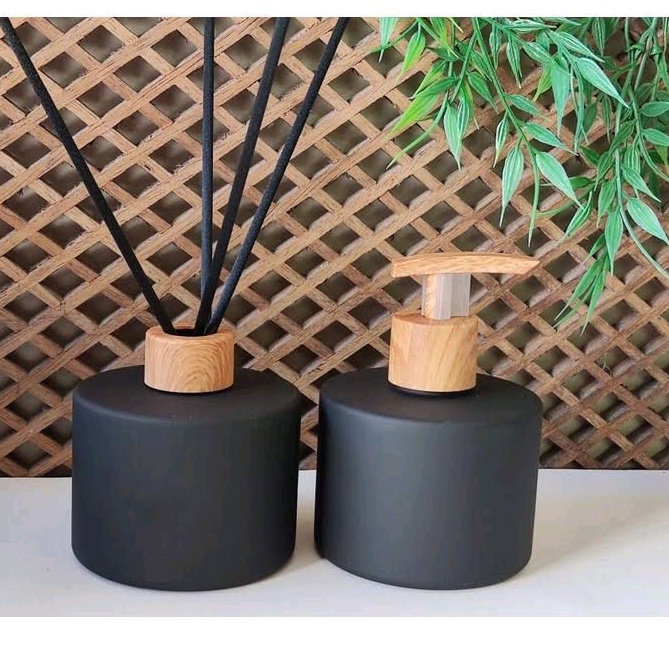 Kit Lavabo PICOLO PRETO FOSCO Difusor De Ambiente 250ml, Vidro Porta Sabonete Com Bandeja