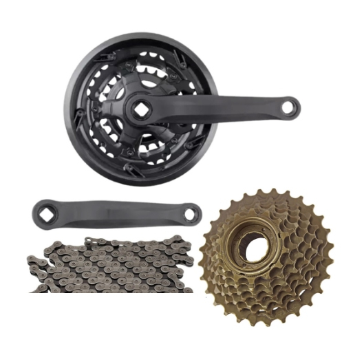 Kit Relação Bicicleta 21 Velocidades com Pedivela + Catraca/Pião + Corrente Bike MTB