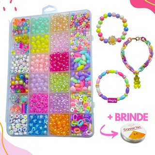 Kit Miçanga Infantil Para Pulseira Colar e Brincos + Fio de Silicone