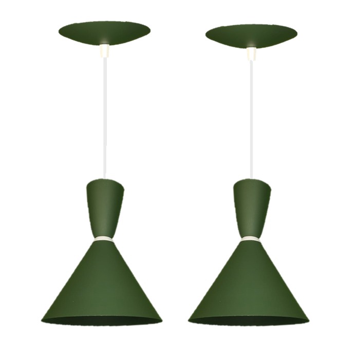 Kit 2 Pendente Cone Lustre em Alumínio Branco Preto Cobre Cores Luminária Decoração