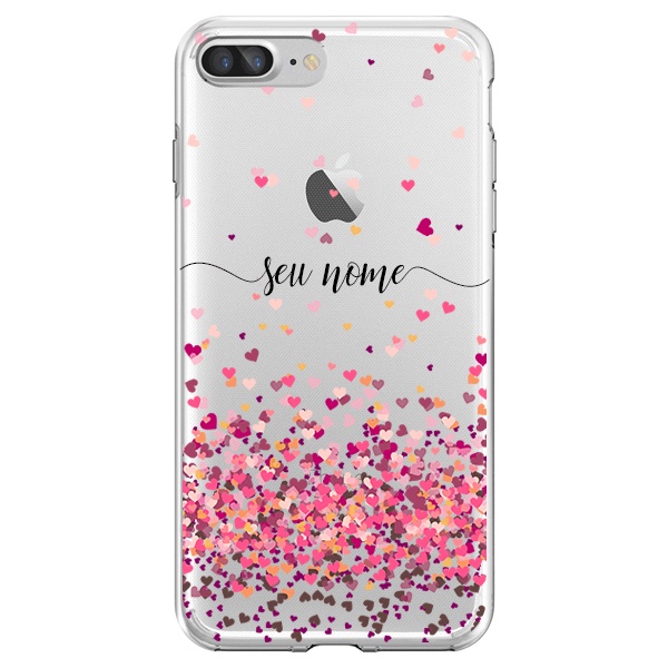 Capa para iPhone 5 e 5S, 5C, 6, 6s, 6 Plus, 6s Plus, 7, 8, 7 Plus, 8 Plus, SE 2020 - Corações Flutuantes | Com Nome Manuscrito