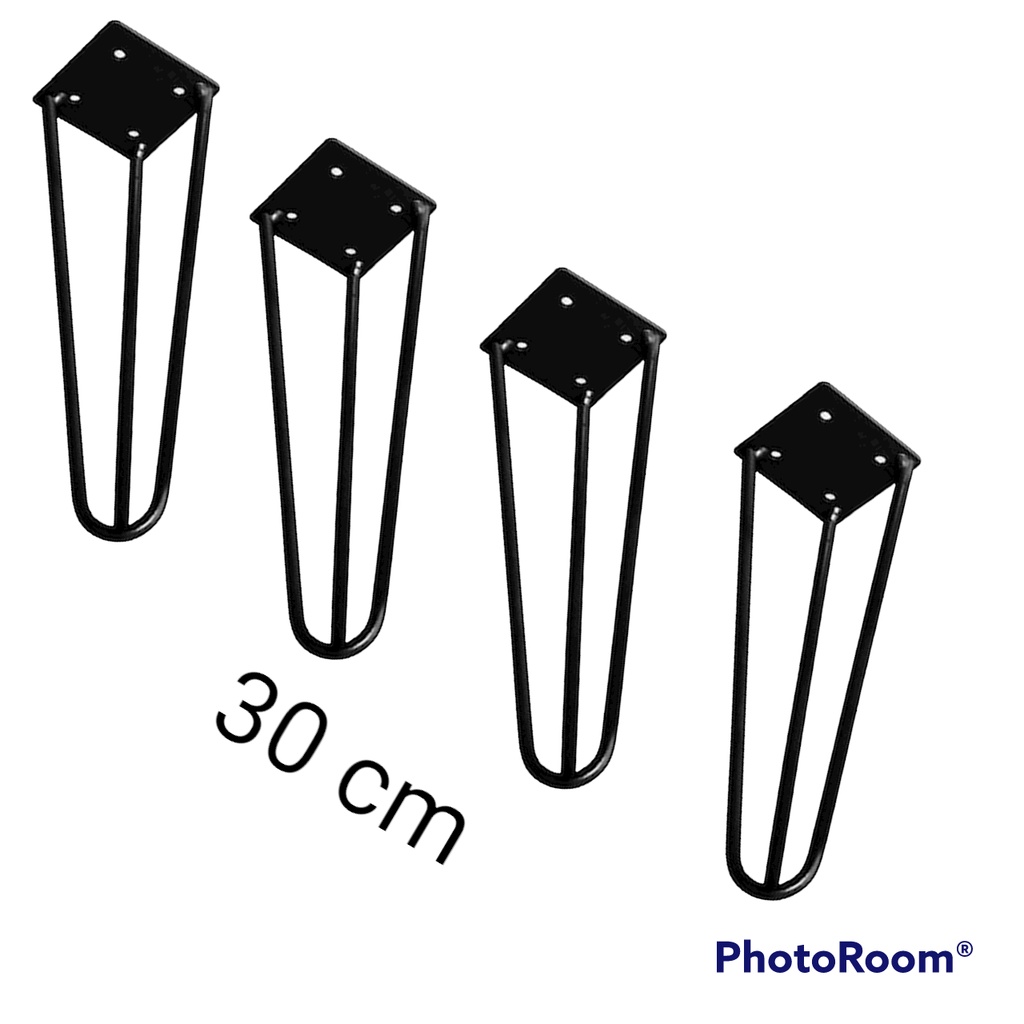 Kit 4 Pé Hairpin Leg 30cm 8mm Triplo Preto Pés De Ferro Mesa