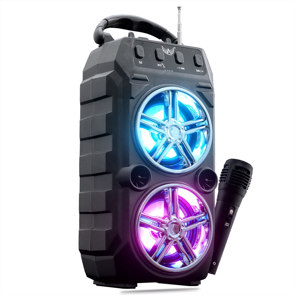 Caixa De Som Bluetooth Amplificada Led Fm Usb Pen Drive Karaokê Microfone
