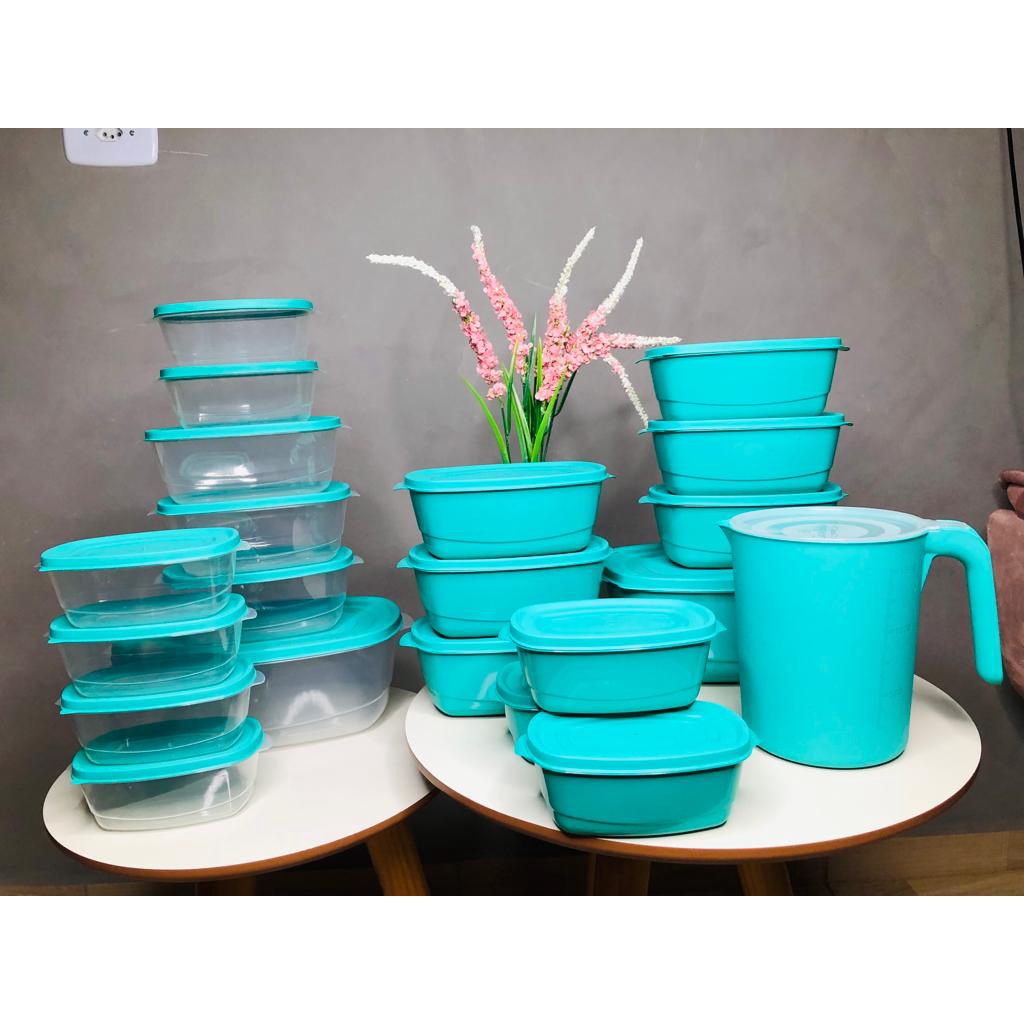 Kit 21 peças de plástico Herméticos potes Retangular de Plástico mais Jarra 1.500 ML