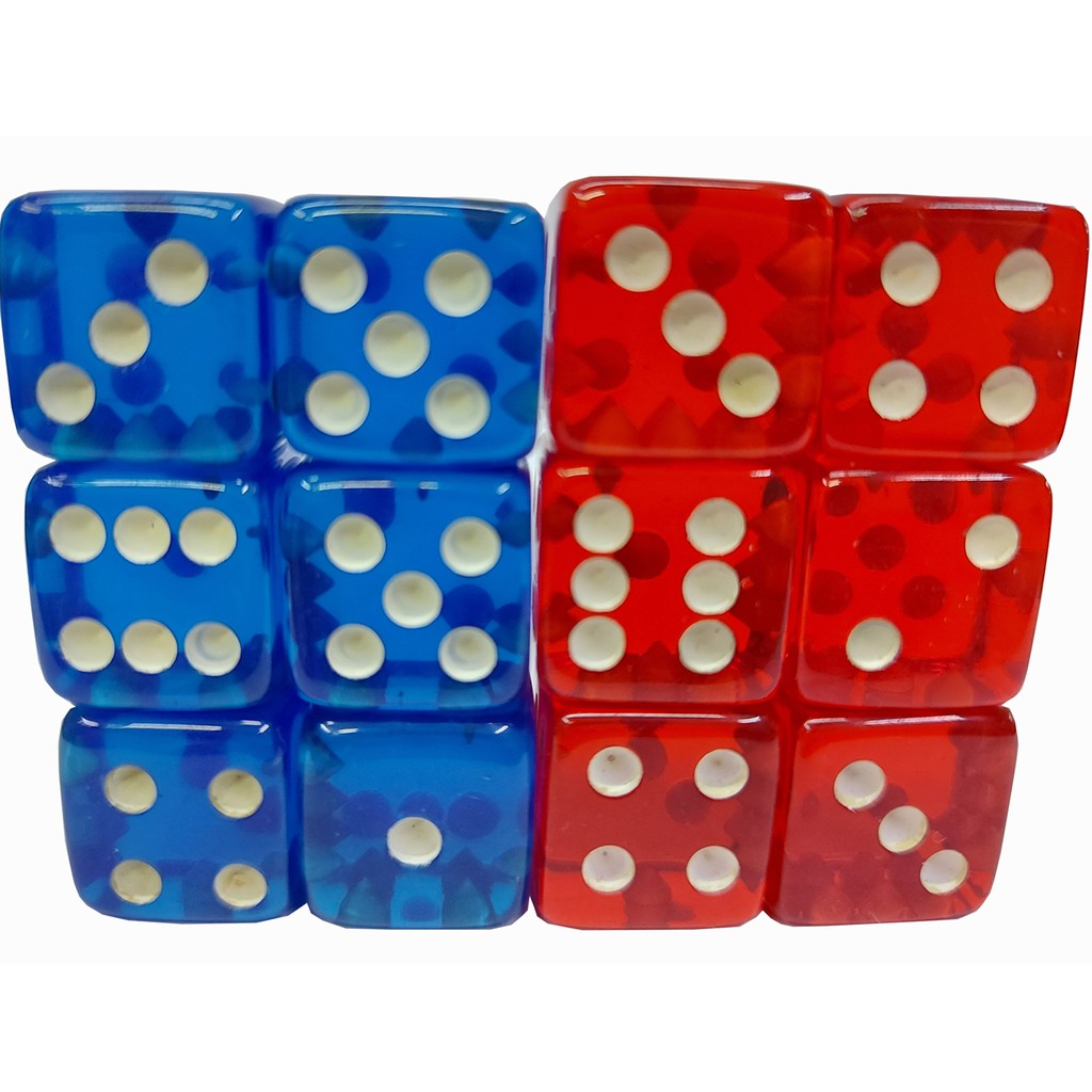 Kit Com 12 Dados, 6 Lados 16mm Azul E Vermelho Translucido