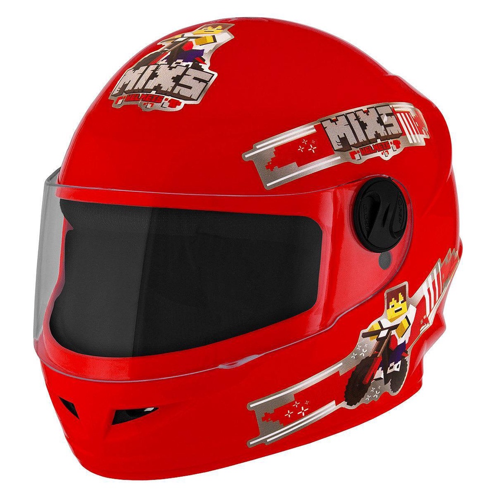 Capacete Moto Infantil Fechado Mixs Start Blocks Tamanho 54 Para Crianças Menino e Menina Minecraft